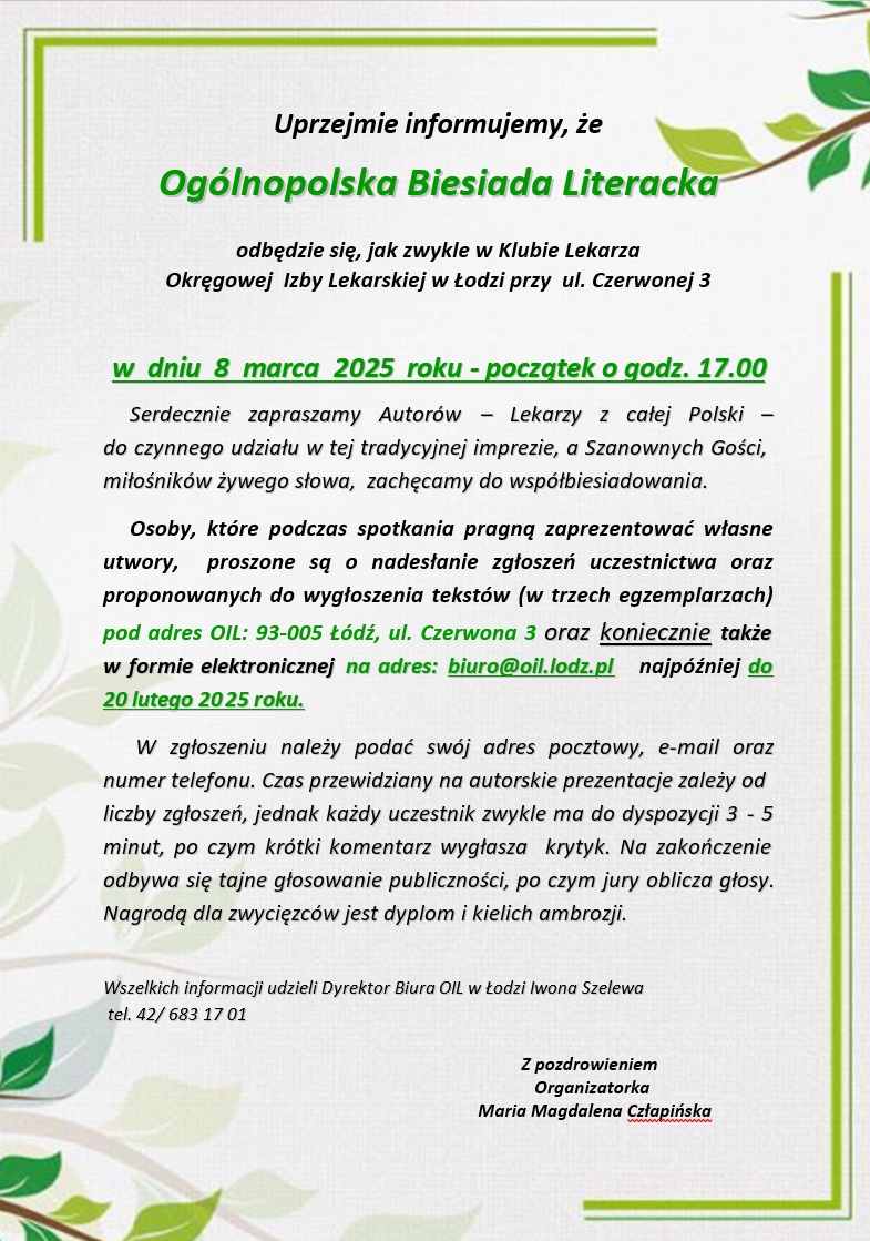 OIL Aktualności Ogólnopolska Biesiada Literacka