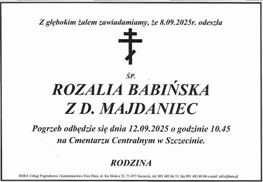 OIL Ogłoszenia Odeszła na wieczny dyżur Rozalia Babińska