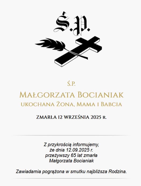 Pogrzeb odbędzie sie o godzinie 10:00, 18.09.25, w kaplicy Domu Pogrzebowego "Hades", Giżynek 5b