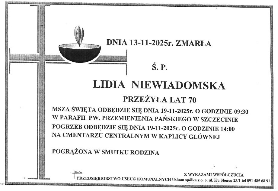 OIL Ogłoszenia Odeszła na wieczny dyżur Lidia Niewiadomska