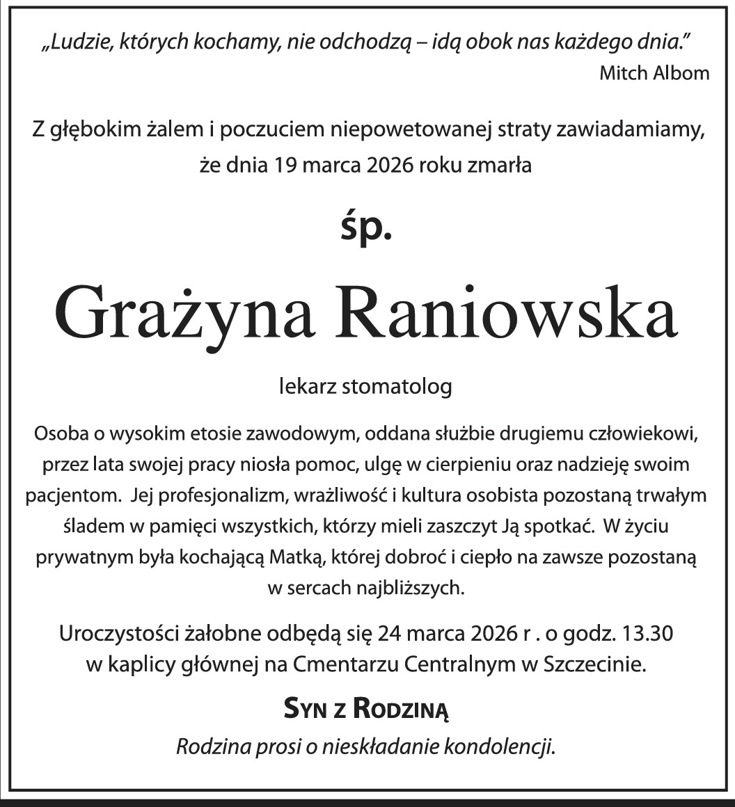 OIL Ogłoszenia Odeszła na wieczny dyżur Grażyna Raniowska